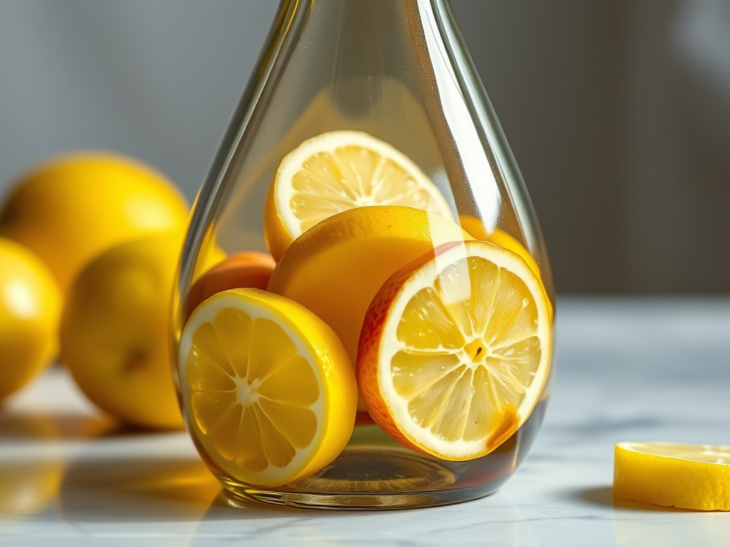 To make a fruit wine with lemons, slice four lemons, remove seeds, and add one sliced apple to a full bottle of rice wine or light white wine. Steep for 3 months. Drink 1 or 2 tablespoons daily with seltzer water or straight up. Good for body, mind, and soul!!